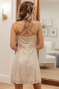 Make a head-turning entrance in the Disco Queen Dress! Gold shimmer sequins, folded ruffle detail on the wait line gives you movement and style. Adjustable back straps to fit you perfectly and keep you shining all night long!
