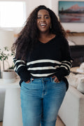 This From Here On Out Striped Sweater adds a bold statement to any wardrobe. It features a soft, sophisticated sweater knit, a collared v-neckline, and balloon sleeves with a relaxed fit. Enjoy the feel of the cozy material and the chicness of the bold stripes.