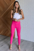 Achieve effortless style and comfort with our Magic Skinny Pants! These high rise pants feature a slim fit and ponte knit for a flattering silhouette. A pull-on design offers convenience while the tuxedo stripe and faux welt pockets add a touch of sophistication.