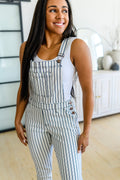 The Railroad Stripe Overalls are a great way to add a fun statement piece to your closet. These stretchy overalls feature functional buttons at the hip and adjustable straps that make them so comfortable! Pair them with a classic white tee or a pop of color.